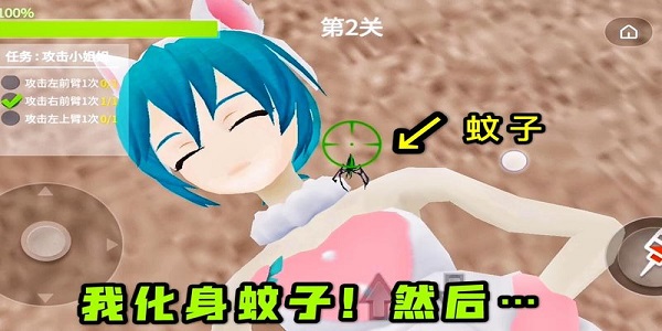 蚊子模拟器是一款非常清凉的休闲小游戏,在游戏中玩家可以任意的选择游戏道具来帮助你完成游戏任务,因为玩家是扮演一直蚊子的,需要不断的吸美女的血才能过关哦,非常好玩。