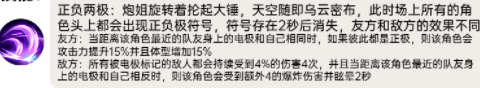 1、炮姐转动着抄起铁锤,天上随后阴云密布,这时场中每一个人物角色头顶都会发生正负极符号,标记存有2秒之后消退,己方和敌军效果不一样。