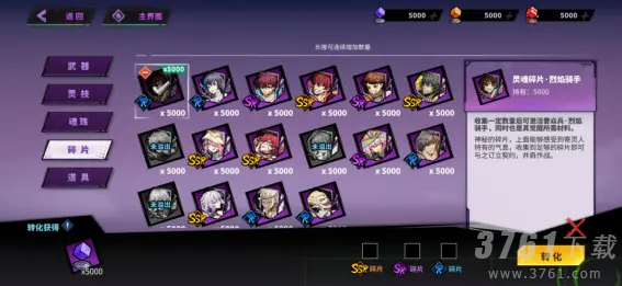 转换,是专属碎片分页查询的功效。玩家能通过转换充裕的碎片,并没有溢出的碎片不能进行转换,得到货币在溢魂商店中换取各种物件。操作中,玩家可以直接挑选必须转换的碎片质量,随后一键勾选;还可以一个个的勾选碎片。