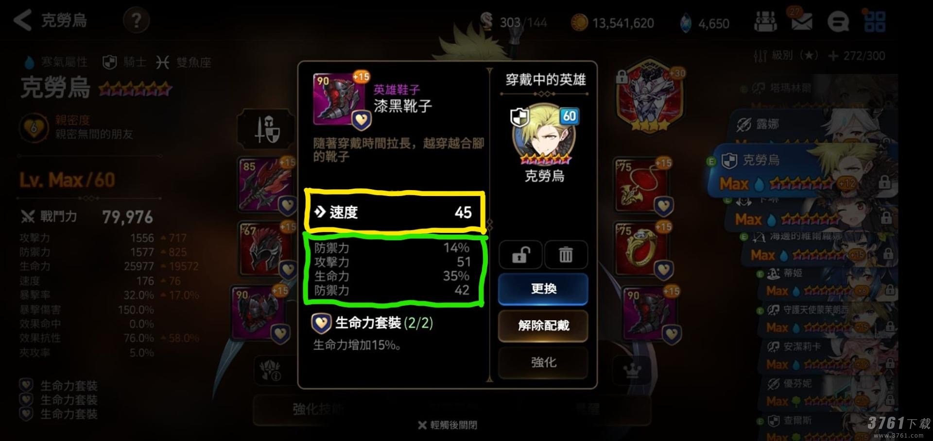 2、此外也可以选择【免疫+抗性套装】,这个可以用于针对异常控制队,配合阵型光环可以获得200左右的抗性,但缺点是就是的速度偏低容易被点杀;